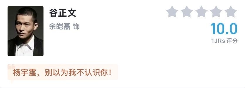 第1名,余皑磊(饰 谷正文)10.0分